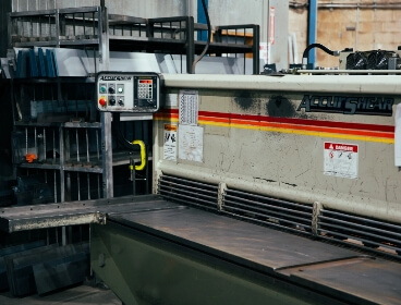 Our shearing capabilities range from 24 gauge up to ½ inch thick for mild steel and specific limits for aluminum and stainless steel.